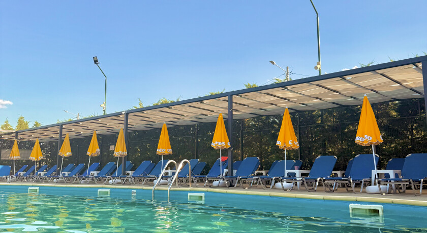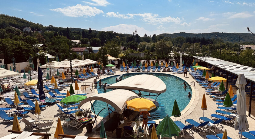 Piscina este deschisă atât pentru oaspeții cazați, cât și pentru vizitatori.